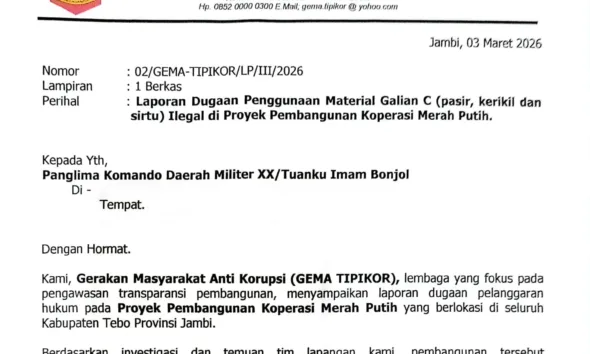 DETAIL.ID, Tebo – Aktivitas pembangunan Gedung Koperasi Desa Merah Putih (KDMP) di Kabupaten Tebo, Jambi, diduga menggunakan material pasir yang...