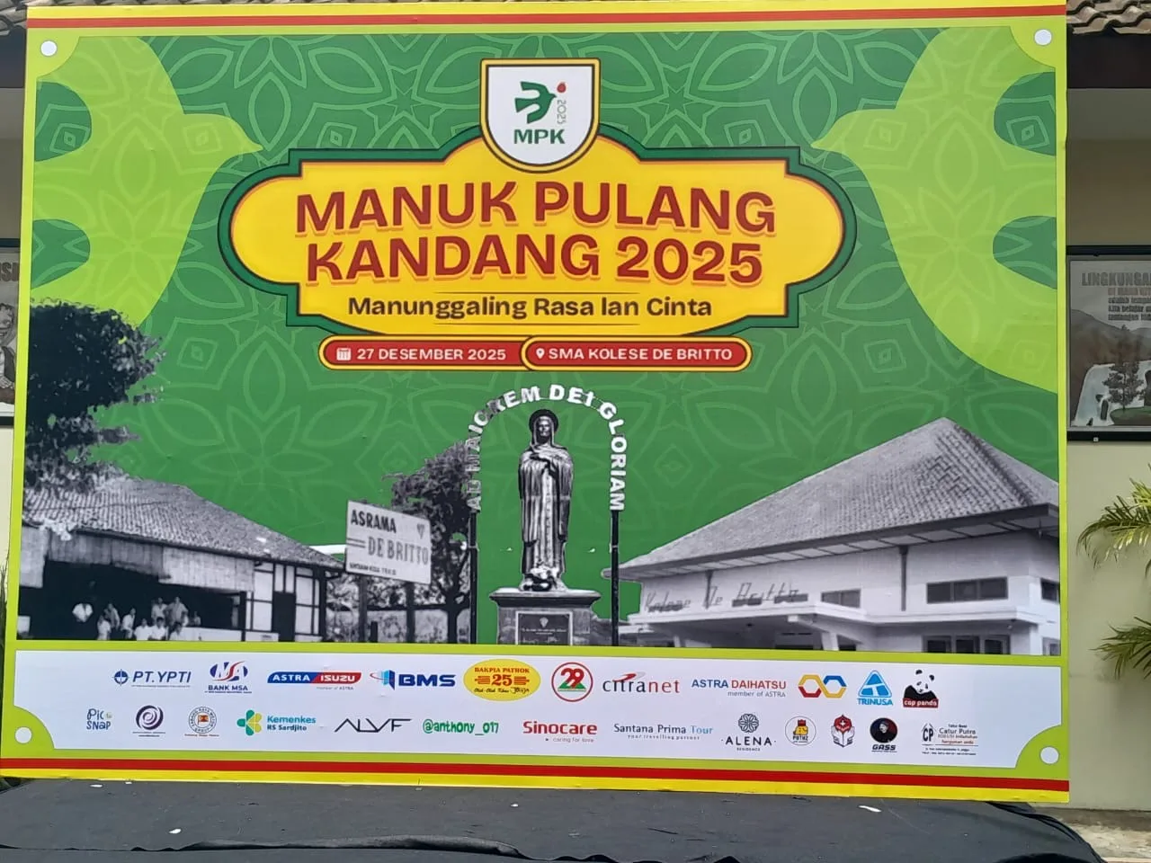 DETAIL.ID, Yogyakarta – Alumni SMA Kolese De Britto Yogyakarta menggelar kegiatan Manuk Pulang Kandang (MPK) pada Sabtu, 27 Desember 2025 di bawah penyelenggaraan kepanitiaan dari alumni lulusan tahun 2000, sebagai momentum kebersamaan dan perjumpaan lintas Angkatan dalam semangat persaudaraan. Mengusung tema “Manunggaling Rasa lan Cinta”, kegiatan ini menjadi ruang untuk mempererat tali silaturahmi, berbagi inspirasi, serta meneguhkan kembali nilai-nilai yang ditanamkan selama menempuh pendidikan di SMA Kolese De Britto.