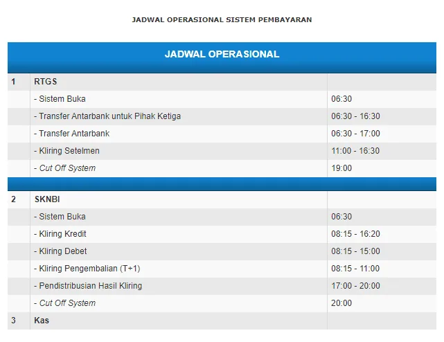 6. Cut-Off BI-RTGS: 17.00 WIB