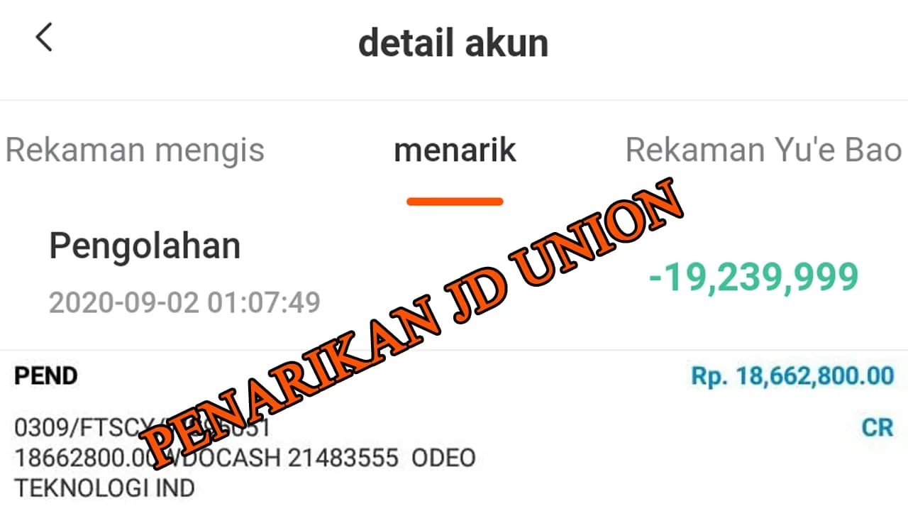 Awalnya pengguna melakukan penarikan pada tanggal 10 September 2020 sebesar Rp46.920.000, tanggal 11 September 2020 pembayaran diterima sebesar Rp20 juta dan Rp5.512.400 dicicil. Setelah itu status penarikan berubah permohonan disetujui yang artinya penarikan sudah dibayar sepenuhnya tapi faktanya hingga hari ini, 18 September 2020 tidak ada cicilan pembayaran seperti yang dikatakan oleh layanan pengguna JD Union.