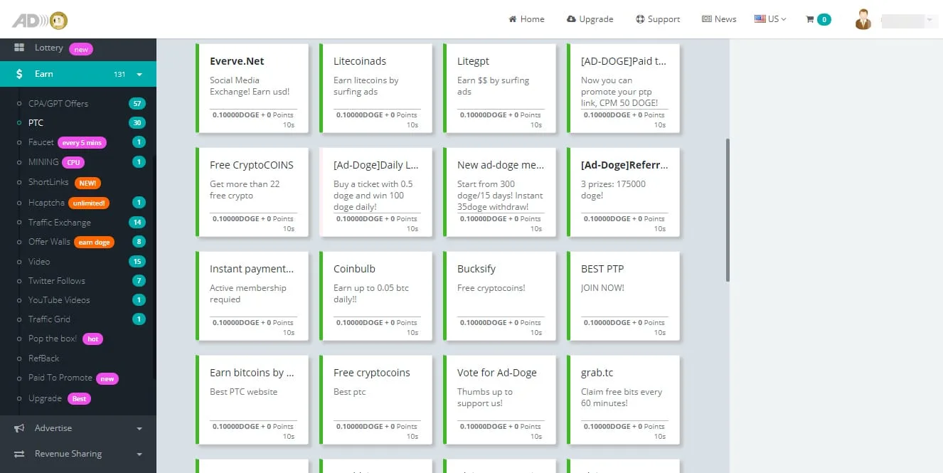 Situs ini memberikan tugas untuk mendapatkan Dogecoin tanpa memerlukan deposit, anda akan menemukan berbagai jenis tugas yang dapat anda lakukan pada situs ini seperti melihat iklan, bermain game, melakukan survei dan lainnya.