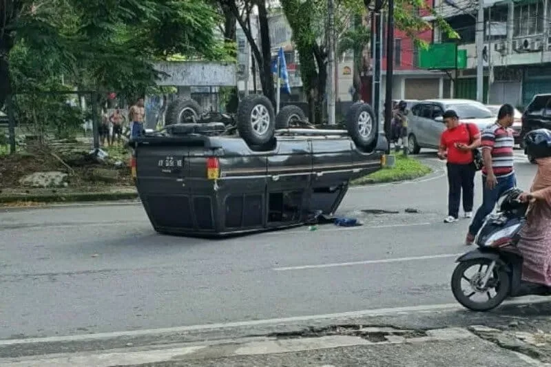 detail.id/, Medan – Satu unit kendaraan roda empat jenis mobil Toyota Kijang Commando nomor regitrasi BK 1615 AV terguling setelah nekad menerobos lampu merah di persimpangan Jalan Sutomo-Jalan HM Yamin, Medan, Minggu siang.