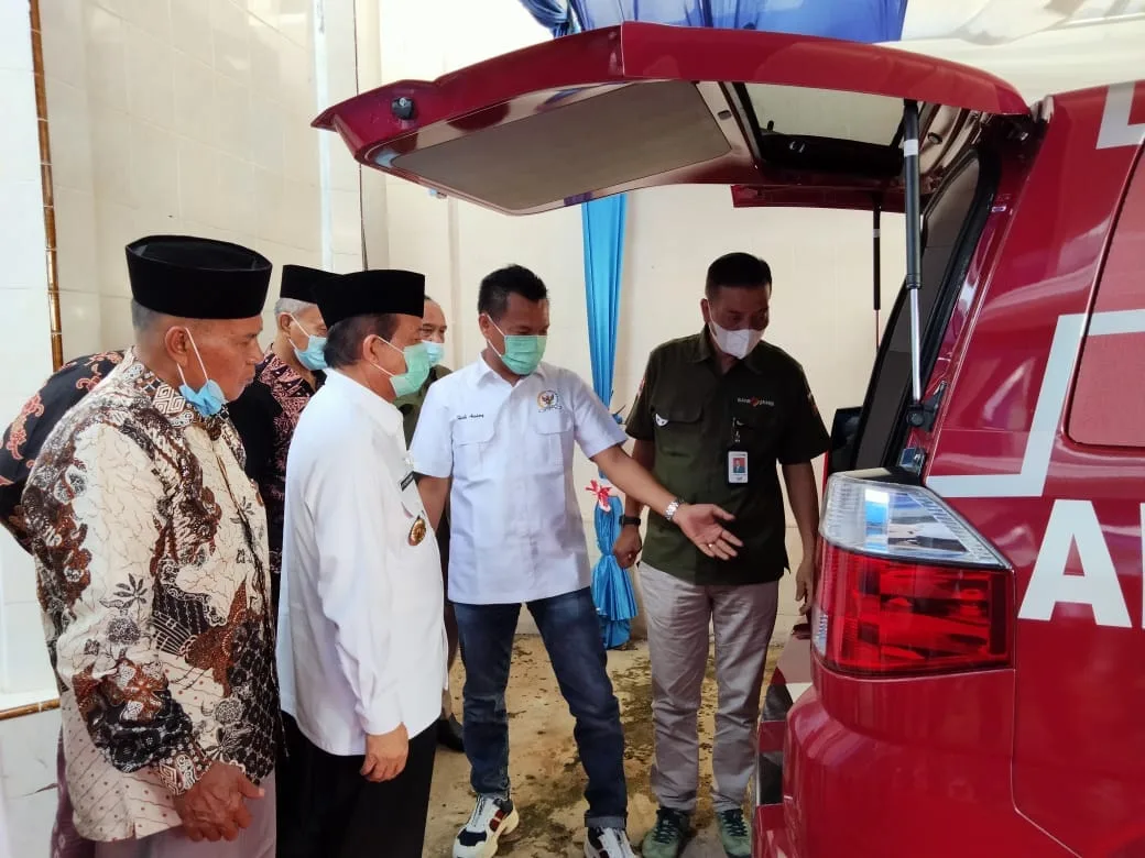 Ambulans CSR Bank Jambi diberikan Gubernur Jambi Fachrori Umar kepada Yayasan Tahan Kilang, Desa Mersam, Kecamatan Mersam, Kabupaten Batanghari, Jambi, Rabu 20 Januari 2020. Penyerahan ambulans disaksikan langsung Direktur Utama Bank Jambi Yunsak El Halcon.