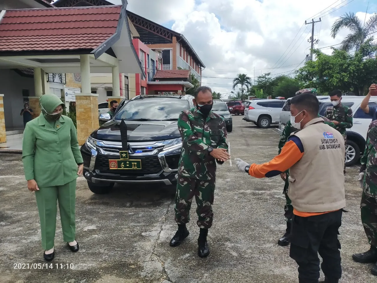 Didampingi istri dan sejumlah pejabat tinggi Korem 042 Gapu, Zulkifli mengunjungi Wisma PKK Muara Bulian. Ia tiba sekira pukul 11.00 WIB disambut Asisten II Setda M Rifa’i dan Kalak BPBD Amir Hamzah, sekaligus memberikan bantuan bagi pasien COVID-19.