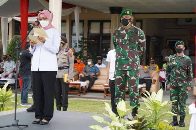 KOTA JAMBI – Komandan Korem 042/Gapu Brigjen TNI M Zulkifli, bersama Kapolda Jambi Irjen Pol A Rahmad Wibowo mendampingi Pj Gubernur Jambi Hari Nur Cahya Murni, memimpin Apel Gelar Pasukan Operasi Ketupat Jaya 2021, di Lapangan Mapolresta Jambi, Rabu (5/5).