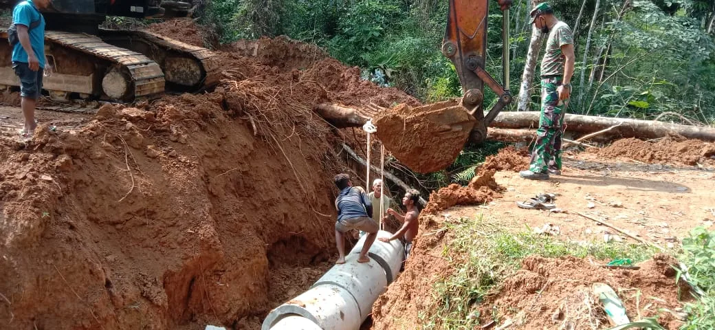 “Hari ini, warga bersama-sama dengan personel TNI memasang gorong-gorong untuk saluran air, sehingga bila terjadi hujan tidak akan lagi menggerus jalan,” ujarnya.