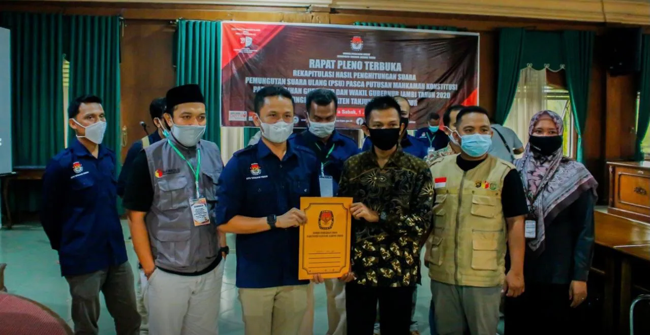detail.id/, Tanjungjabung Timur – Komisi Pemilihan Umum (KPU) Kabupaten Tanjungjabung Timur telah melaksanakan Rapat Pleno Terbuka Rekapitulasi Hasil Pemungutan Suara Ulang (PSU) Pemilihan Gubernur dan Wakil Gubernur Jambi 2020 sesuai amar putusan Mahkamah Konstitusi (MK).