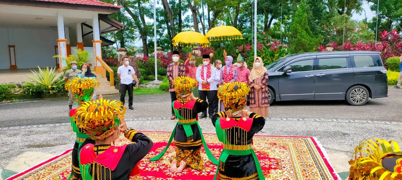 Penyambutan H Al Haris ‘pulang kampung’ itu, dimeriahkan dengan Tarian Sekapur Sirih.