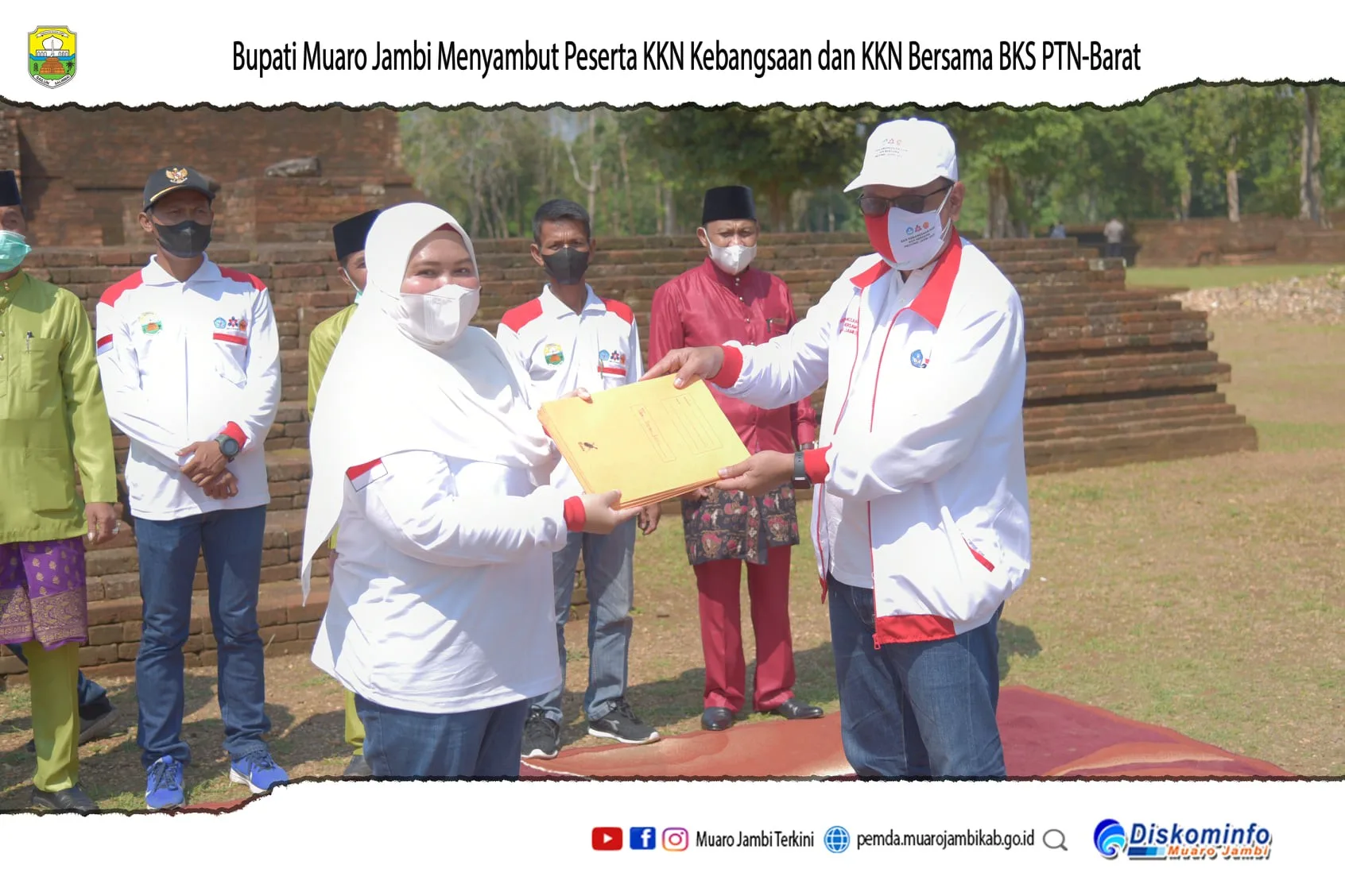 DETAIL.ID, Muaro Jambi – Bupati Muaro Jambi Hj. Masnah Busyro, SE,. M.Tr.IP menyambut Peserta KKN Kebangsaan dan KKN bersama BKS PTN-Barat, Minggu Pagi, 25 Juli 2021 bertempat di Candi Kedaton Komplek Percandian Kabupaten Muaro Jambi.