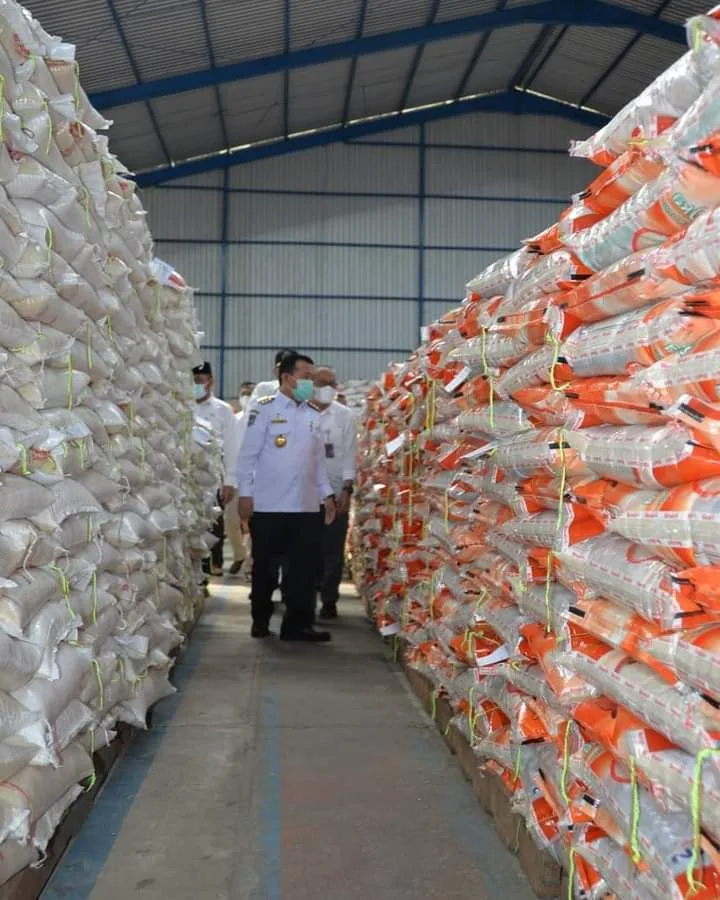 Al Haris menyampaikan bahwa kunjungan ini untuk melihat langsung kondisi beras yang akan disalurkan kepada masyarakat serta kendala yang dihadapi dalam penyalurannya.
