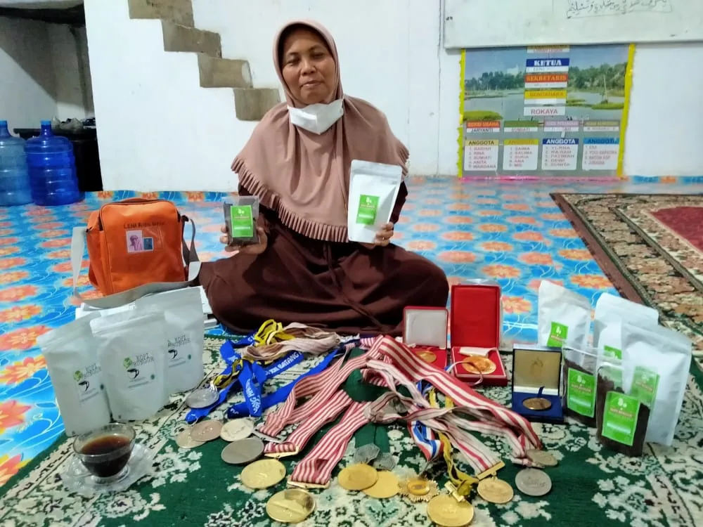 Sejak tiga tahun lalu, Leni mulai mengolah Bungur menjadi kopi. Ia beri nama Kopi Bungur dan mengemasnya sebagai produk Kampung Legok, Kecamatan Danau Sipin, Kota Jambi.