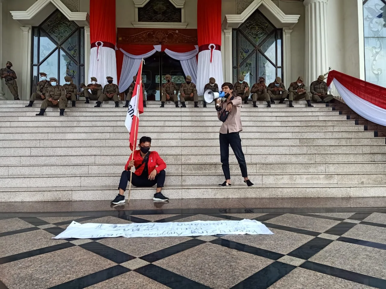 detail.id/, Jambi – Puluhan mahasiswa yang tergabung dalam Gerakan Mahasiswa Nasional Indonesia (GMNI) Jambi menggelar aksi unjuk rasa pada Kamis, 26 Agustus 2021 di Kantor Gubernur dan Kantor DPRD Provinsi Jambi.