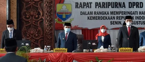DETAIL.ID, Jambi – Gubernur Jambi Dr. H. Al Haris, S.Sos. MH beserta wakil gubernur Jambi Drs. H. Abdullah Sani bersama forkopimda dan pejabat di jajaran Pemprov Jambi mengikuti jalannya rapat paripurna istimewa DPRD Provinsi Jambi, Senin 16 Agustus 2021.