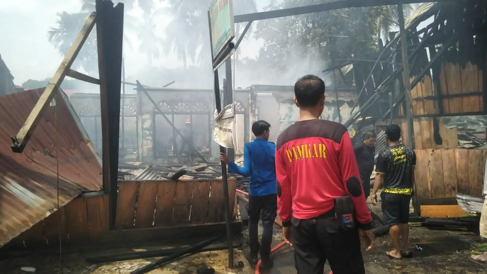 Berselang beberapa menit, setelah api membesar, dua unit mobil pemadam kebakaran dan satu unit mobil water canon milik Sat Shabara Polres Merangin di terjunkan untuk memadamkan api yang telah membesar membakar seluruh isi rumah dan sanggar.