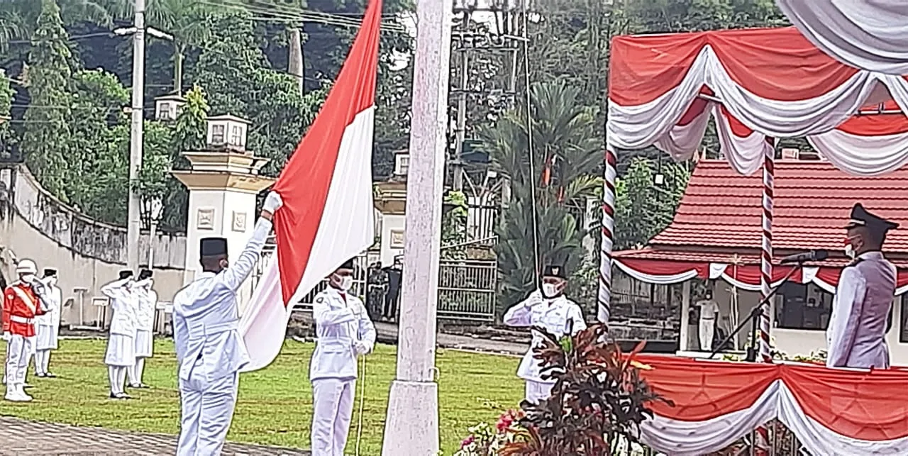 detail.id/, Merangin – Upacara pengibaran duplikat Bendera Pusaka Merah Putih, memperingati Hari Ulang Tahun (HUT) Kemerdekaan Republik Indonesia ke-76 di halaman depan kantor bupati Merangin, berlangsung khidmat, Selasa 17 Agustus 2021.