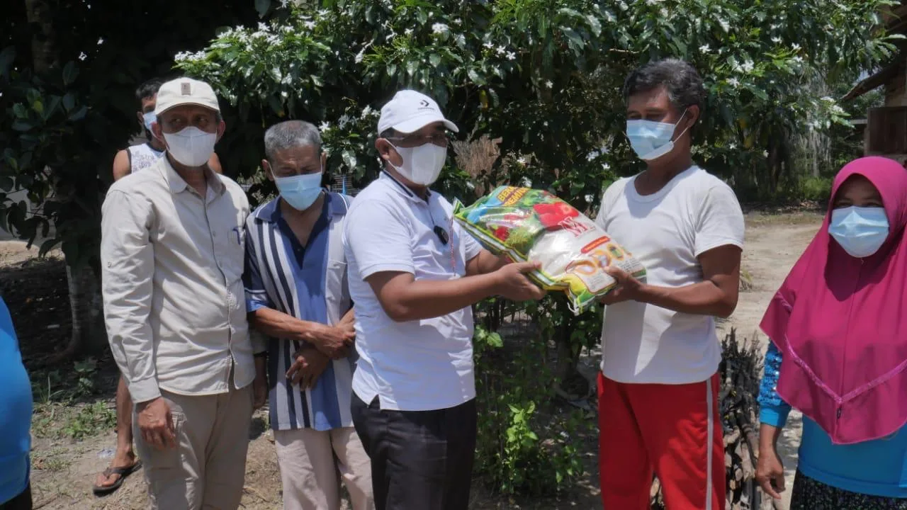 Usai melaksanakan panen laos di Desa Muntialo, pada Sabtu 11 September 2021, Bupati Drs H Anwar Sadat, M.Ag, didampingi oleh Anggota DPRD Tanjab Barat Arfin Siregar memberikan bantuan paket sembilan bahan pokok (sembako) kepada para warga di Desa Terjun Jaya Kecamatan Betara. Pada kegiatan tersebut, hadir juga Sekda Agus Sanusi dan Asisten III Setda Jeter Simamora, S.IP,.