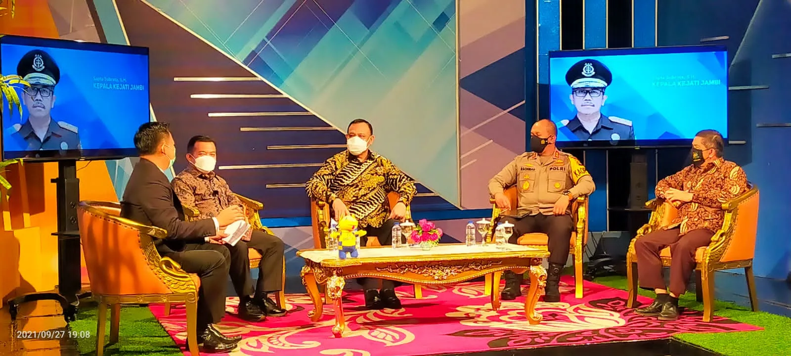 detail.id/, Jambi – Ketua Komisi Pemberantasan Korupsi (KPK) RI Firli Bahuri mengikuti sesi dialog khusus bertemakan Pencegahan Korupsi Proyek Pemerintah Provinsi Jambi bersama Gubernur Jambi Al Haris, Kapolda Jambi Rahmad Wibowo, dan Kejati Jambi Sapto Subroto yang bertempat di TVRI Jambi pada Senin, 27 September 2021 malam.