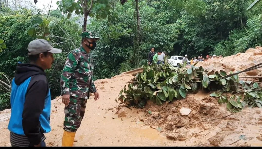 Dikatakan Danramil, jika saat ini pihaknya sedang berupaya bersama warga dengan alat seadanya untuk mengangkat material longsor agar kendaraan bisa melintas di lokasi.