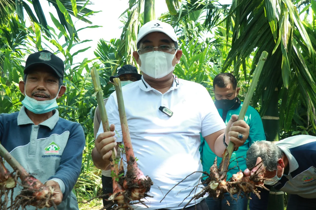 DETAIL.ID, Kualatungkal – Bupati Tanjungjabung Barat, Drs. Anwar Sadat M. Ag menghadiri sekaligus mengikuti kegiatan panen raya kebun Laos yang luasnya lebih kurang 10 Ha di Dusun Karya Lestari I, Desa Muntialo, Kecamatan Betara, Sabtu 11 September 2021.