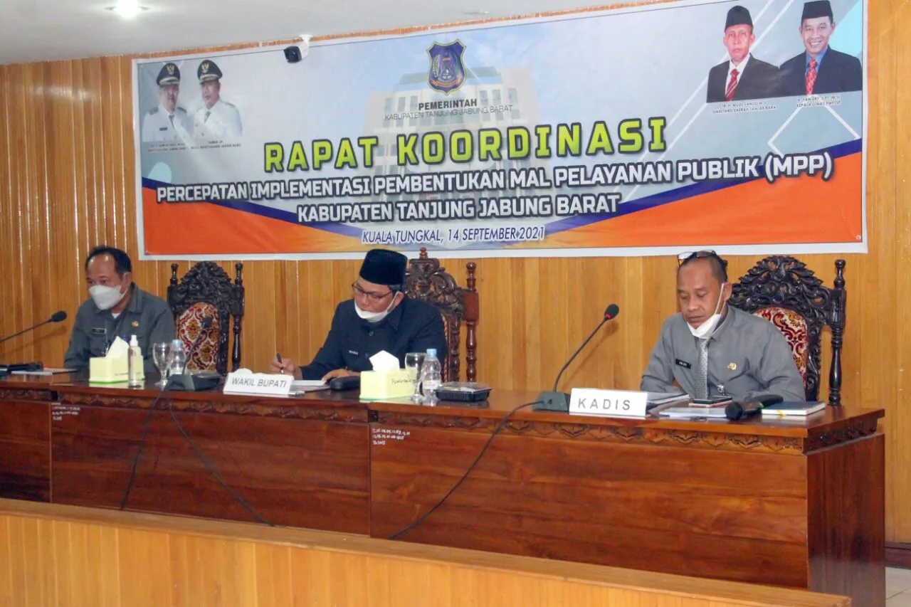 detail.id/, Kualatungkal – Wakil Bupati Tanjungjabung Barat Hairan, SH, memimpin rapat koordinasi percepatan implementasi pembentukan Mal Pelayanan Publik (MPP) Kabupaten Tanjungjabung Barat di Pola Atas, Kantor Bupati Tanjungjabung Barat, pada Selasa 14 September 2021.