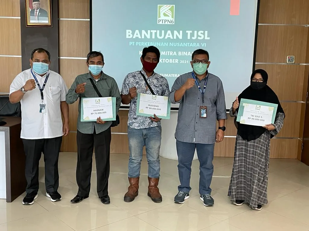 detail.id/, Jambi – Sebagai salah satu BUMN perkebunan, upaya PTPN VI Jambi membantu masyarakat patut diacungi jempol. Buktinya, pada Selasa, 12 Oktober 2021, PTPN VI Jambi menyerahkan bantuan Tanggung Jawab Sosial dan Lingkungan (TJSL), kepada 15 pelaku usaha, mitra binaan PTPN VI Jambi.