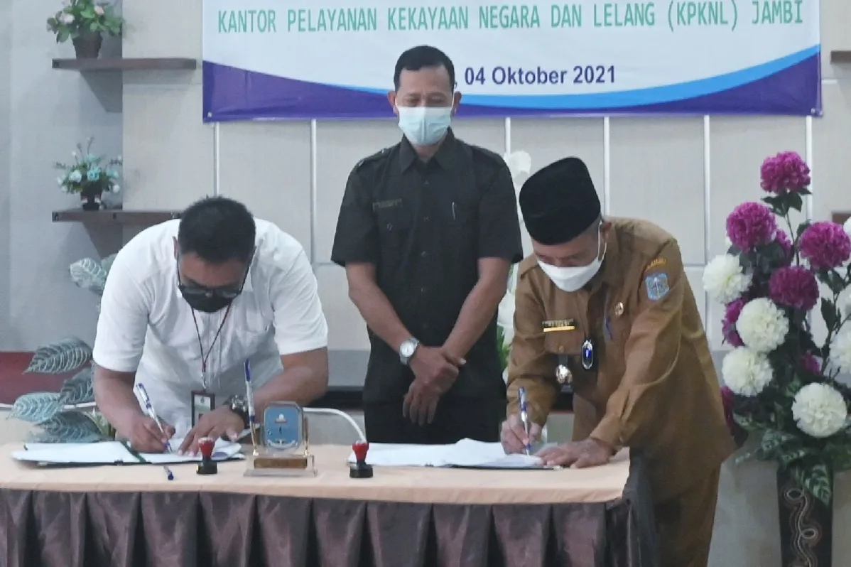 detail.id/, Merangin – Bupati Merangin H Mashuri didampingi Sekda Fajarman dan Asisten I Setda Merangin H Abd Gani melakukan penandatanganan Nota Kesepahaman antara Pemkab Merangin dengan Kantor Pelayanan Kekayaan Negara dan Lelang (KPKNL) Provinsi Jambi pada Senin, 4 Oktober 2021.