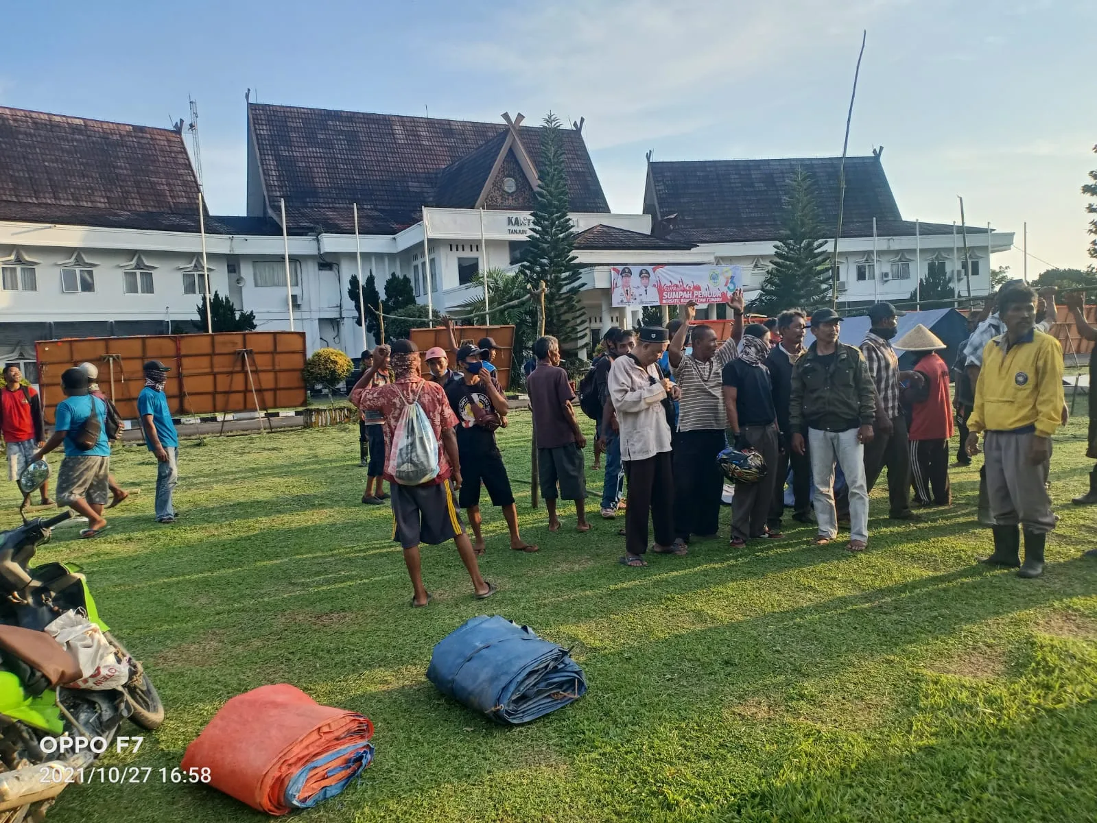 Beberapa masa aksi mendengar bahwa pemerintah menyatakan sepenuhnya mendukung masyarakat namun pada kenyataannya, bertolak belakang dengan apa yang dikatakan Syafril selaku Sekda Kabupaten Tanjungjabung Timur dan massa sampai saat ini masih berada dikantor bupati dengan mendirikan tenda.