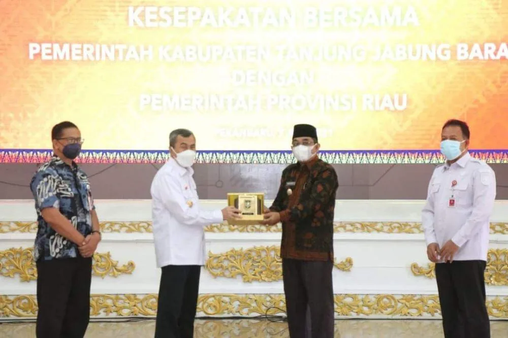 detail.id/, Kualatungkal – Pemerintah Kabupaten Tanjungjabung Barat, Provinsi Jambi melaksanakan Penandatanganan Kesepakatan (MoU) antara Pemerintah Kabupaten Tanjung Jabung Barat dan Pemerintah Provinsi Riau di Balai Serindit Gedung Daerah Pekanbaru, Rabu 7 Juli 2021.