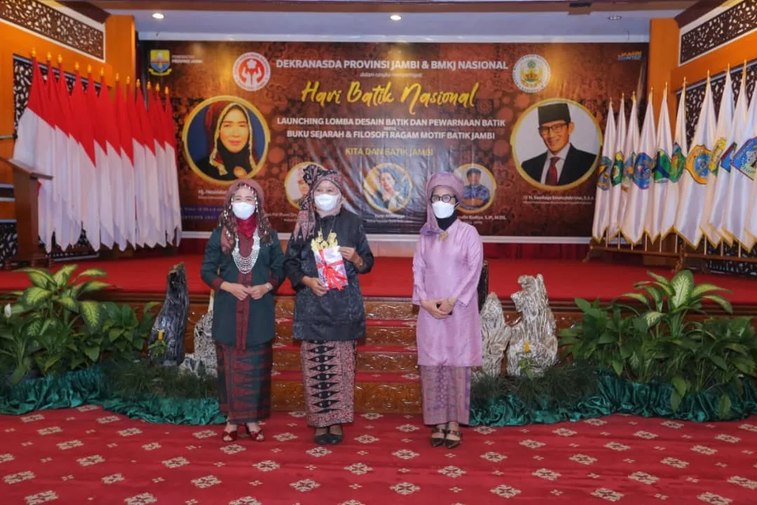 detail.id/, Jambi – Ketua Dekranasda Provinsi Jambi Hj. Hesti Haris, SE membuka Acara Peringatan Hari Batik Nasional dengan tema “Kita dan Batik Jambi” sekaligus launching Buku Sejarah dan Filosofi Motif Batik Jambi di Auditorium Rumah Dinas Gubernur Jambi, Sabtu 9 Oktober 2021