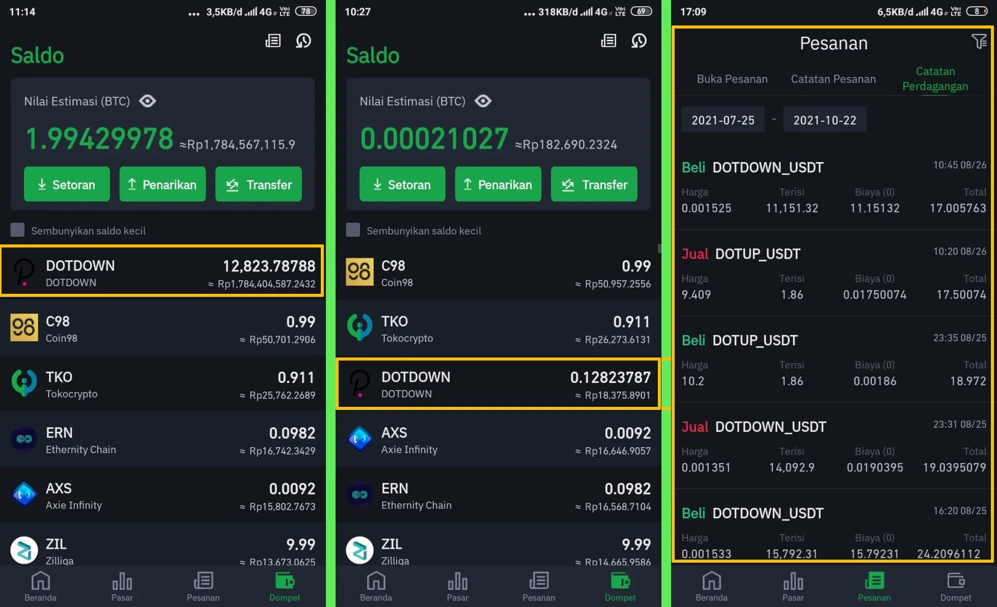 Pria asal Tangerang ini mengaku telah kehilangan asset senilai Rp 1,7 miliar. Angka yang fantastis. Kepada sebuah media yang khusus menulis tentang kripto ia menyebut, awalnya memiliki aset kripto jenis Dotdown sebanyak 12.823,78788 unit dan kini berkurang hanya tinggal 0,12823 unit. Ia membeli asset tersebut di platform market cryptocurrency, Tokocrypto.