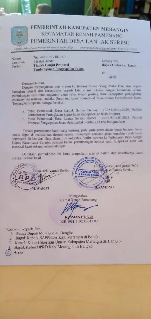 Upaya lain juga dilakukan Kades, dengan meminta dukungan kepada para wakil rakyat yang berasal dari Dapil Merangin yang duduk di DPRD Provinsi Jambi.