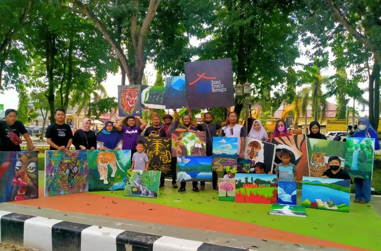“Semenjak tahun 2011 hingga saat ini kerja sama Balai TNKS Merangin dan seniman Merangin, terjalin dengan baik bahkan bukan hanya melukis di atas kanvas saja tetapi kami juga sempat melukis mural di dinding taman bukit young. Selain itu kami juga pernah melakukan pameran harimau-harimauku se-Sumatera. Dan salah satu karya seniman merangin sempat dikoleksi warga negara Prancism” ungkap seniman yang akrab dipanggil Ucok ini.