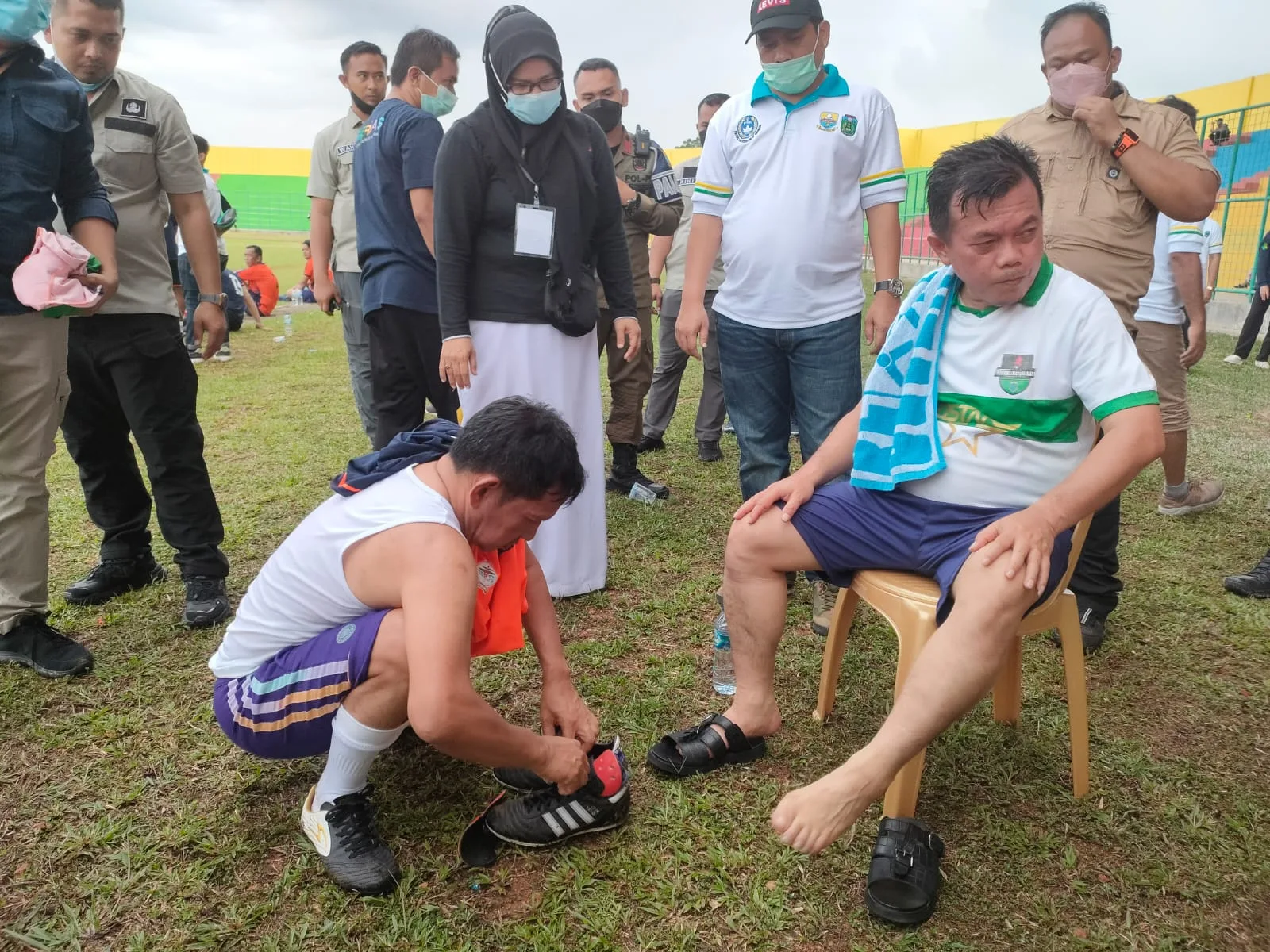 Tim medis yang melihat itu langsung bertindak menghampiri Gubernur untuk melakukan penanganan. “Terkilir pada bagian tumit,” kata tim medis yang menangani.