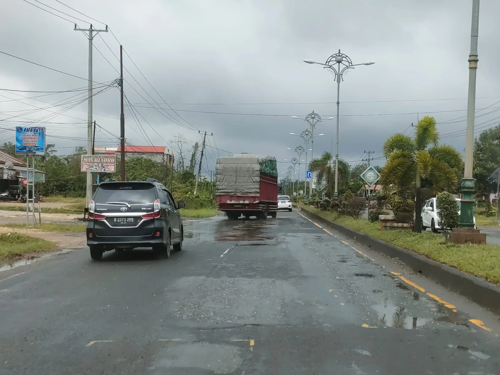 Hujan Ancam Keselamatan Pengendara di Jalan Dua Jalur Kota Tebo