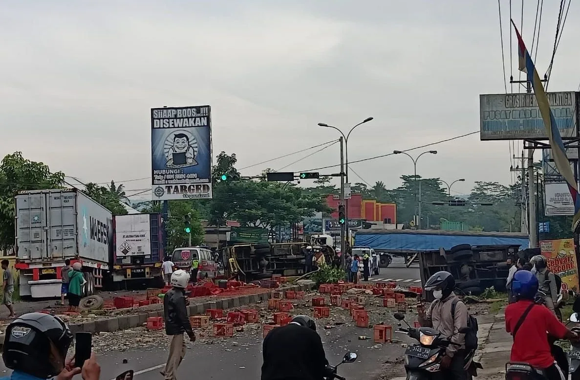 Kecelakaan Beruntun di Salatiga, 2 Truk Terguling dan 1 Pemotor Meninggal Dunia