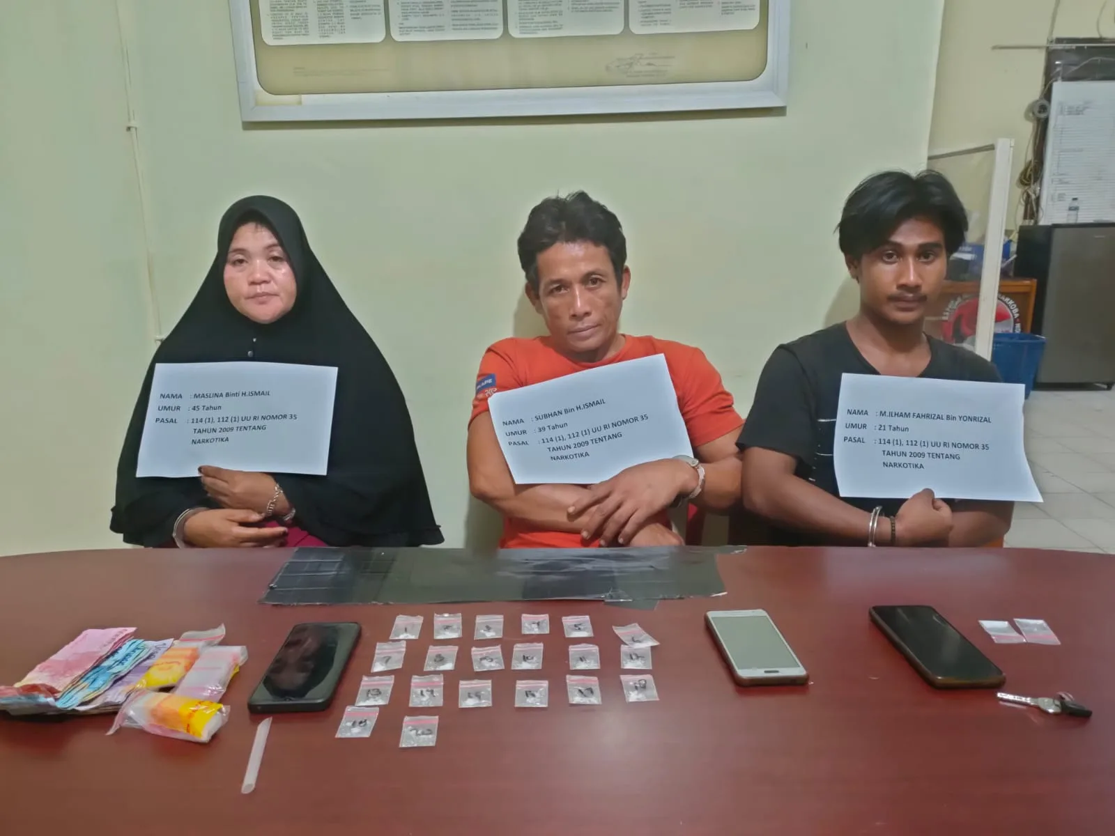 Pengakuan pelaku Subhan menuntun ke rumah Mislina. Dari pengeledahan yang dilakukan polisi, mendapatkan 20 paket sabu siap edar. Selain itu, polisi juga berhasil mengamankan barang bukti lainya berupa uang tunai Rp 670 .000 yang diduga hasil penjualan narkoba.