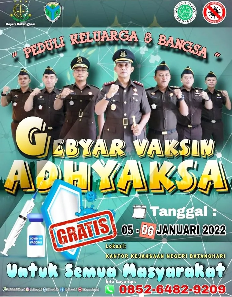 Vaksinasi Gratis Kejari Batanghari Menyasar 250 Orang, Pelaksanaan Dimulai Lusa
