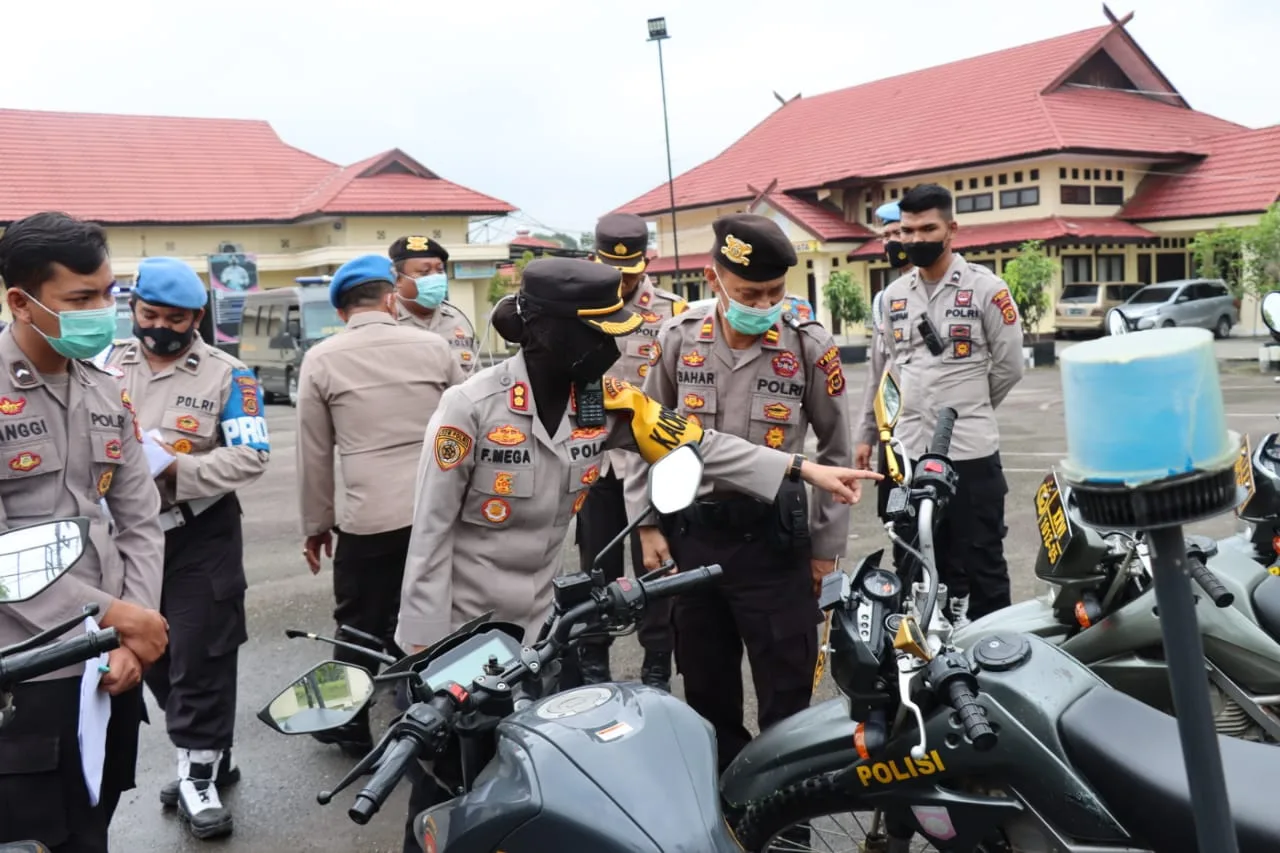 DETAIL.ID, Tebo – Dalam rangka mendukung pelaksanaan tugas dan pelayanan kepada masyarakat agar lebih optimal, Kapolres Tebo Polda Jambi, Tebo AKBP Fitria Mega, M.Psi, Psi memeriksa kendaraan bermotor baik roda dua maupun roda empat di halaman Mapolres Tebo, Selasa, 15 Maret 2022.