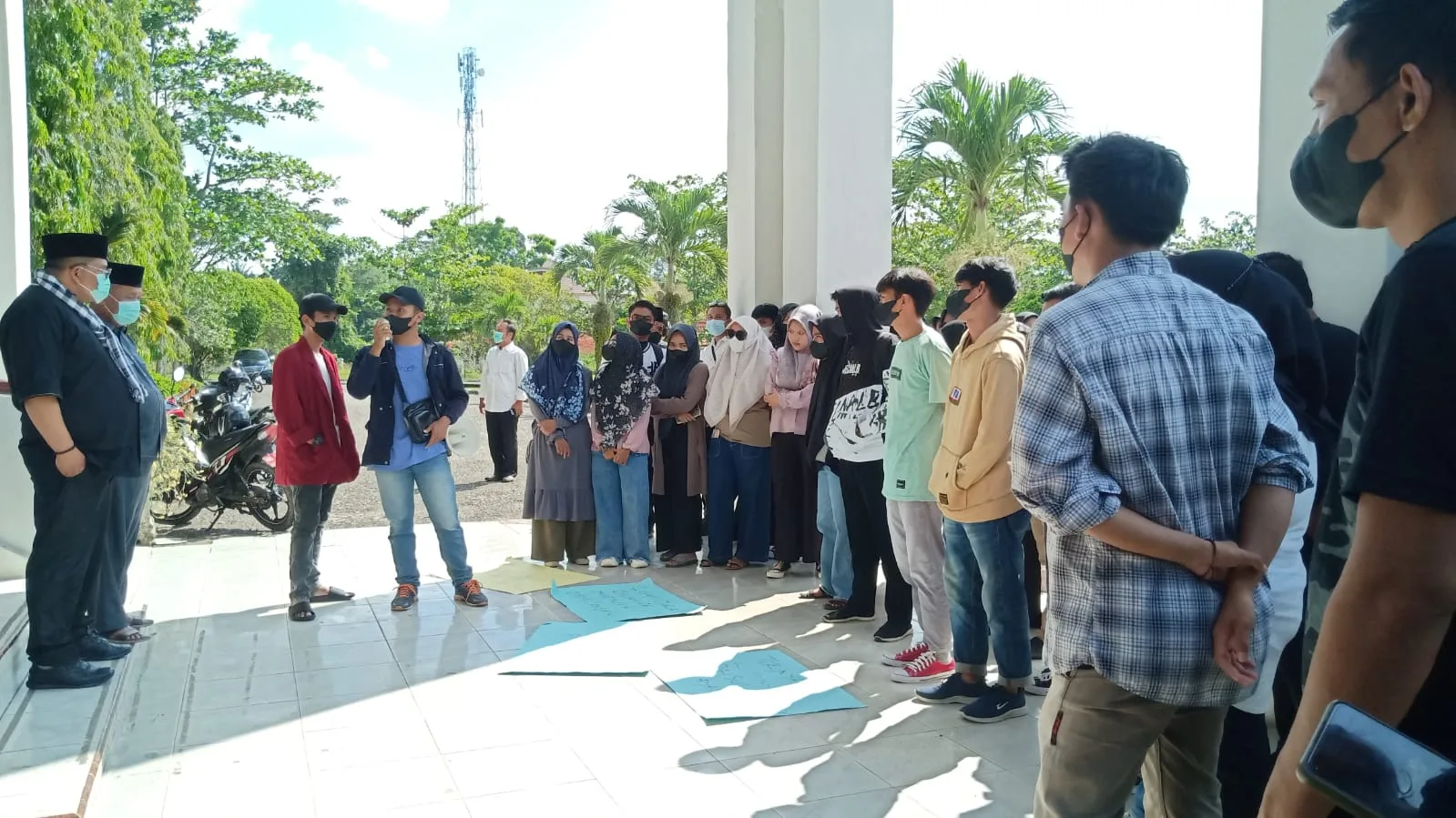 Aksi ini berlangsung di teras kantor DPRD Merangin sekitar satu jam dan disambut Ketua DPRD Herman Efendi, Wakil Ketua Zaidan Ismail dan anggota Hasren Purja Sakti juga Kapolres Merangin AKBP Dewa Ngakan Nyoman Arinata.