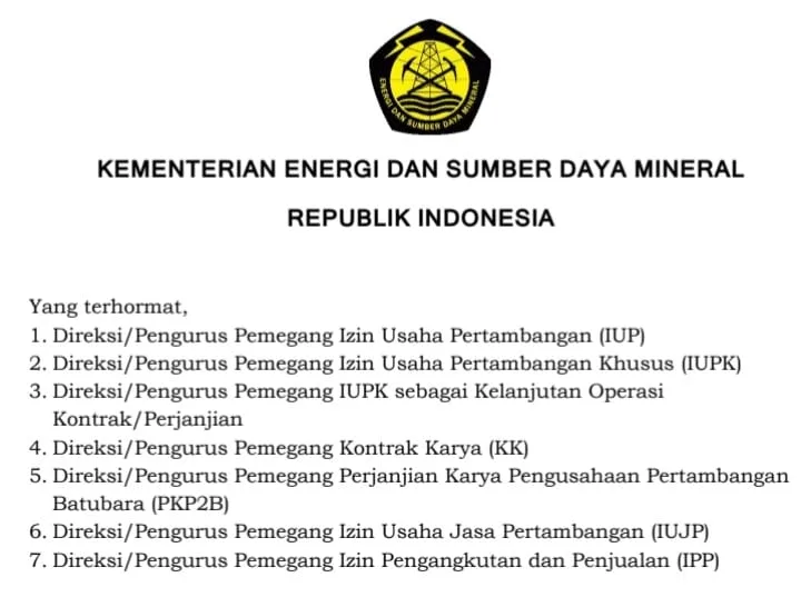 3. Badan Usaha Pertambangan wajib melaporkan Tanda Nomor Kendaraan Bermotor (TNKB)/Nomor Polisi kendaraan bermotor yang digunakan untuk melaksanakan kegiatan pengangkutan mineral dan/atau batu bara sebagaimana dimaksud pada angka 1 dan angka 2 kepada Direktur Jenderal Mineral dan Batu Bara paling lambat 30 (tiga puluh) hari kalender sejak tanggal Surat Edaran ini.