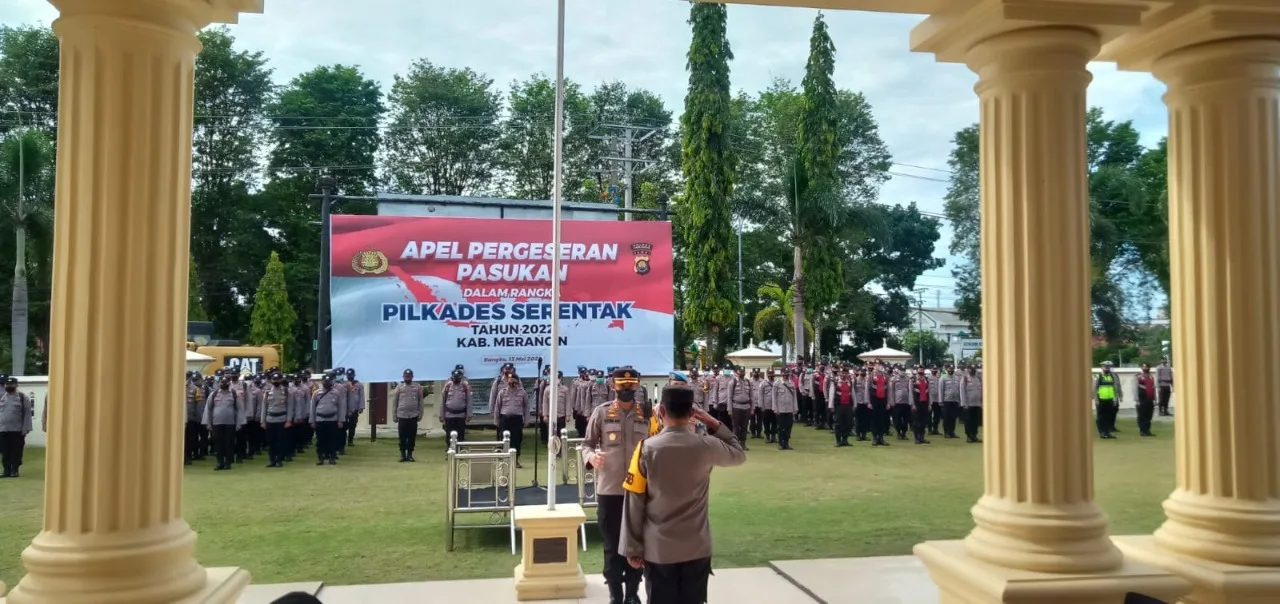 DETAIL.ID, Merangin – Untuk menjamin pelaksanaan Pemilihan Kepala Desa (Pilkades) serentak yang digelar di 176 desa dan juga untuk menjaga kondusifitas selama pelaksanaan Pilkades, Polres Merangin menurunkan sedikitnya 446 personil.
