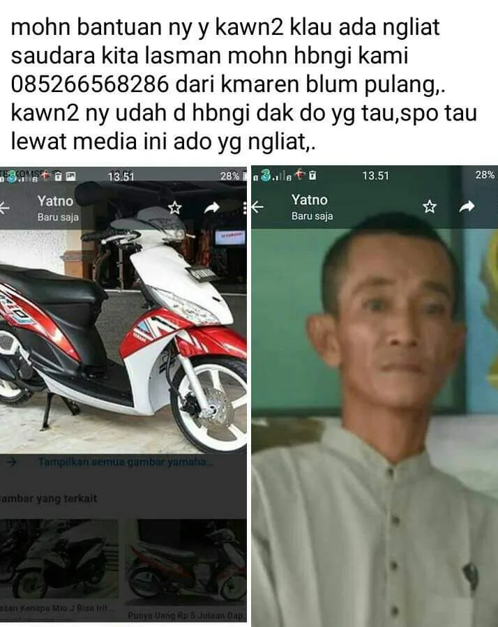 “Sudah saya hubungi teman-temannya, tidak satupun yang tahu keberadaan adik saya. Saya juga telah memposting hal ini ke media sosial Facebook maupun grup di Facebook dan grup WhatsApp,” kata Riyanto, kakak kandung Lasman, Minggu, 8 Mei 2022.