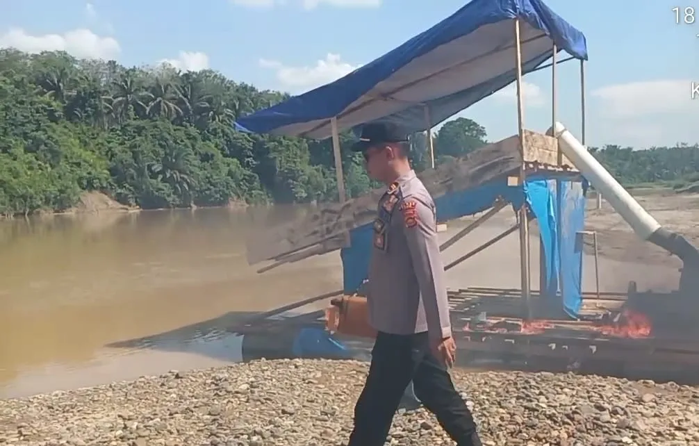 Selanjutnya, polisi langsung membakar rakit dompeng tersebut, dengan tujuan agar pelaku tidak mengulangi perbuatannya melakukan penambangan emas ilegal.