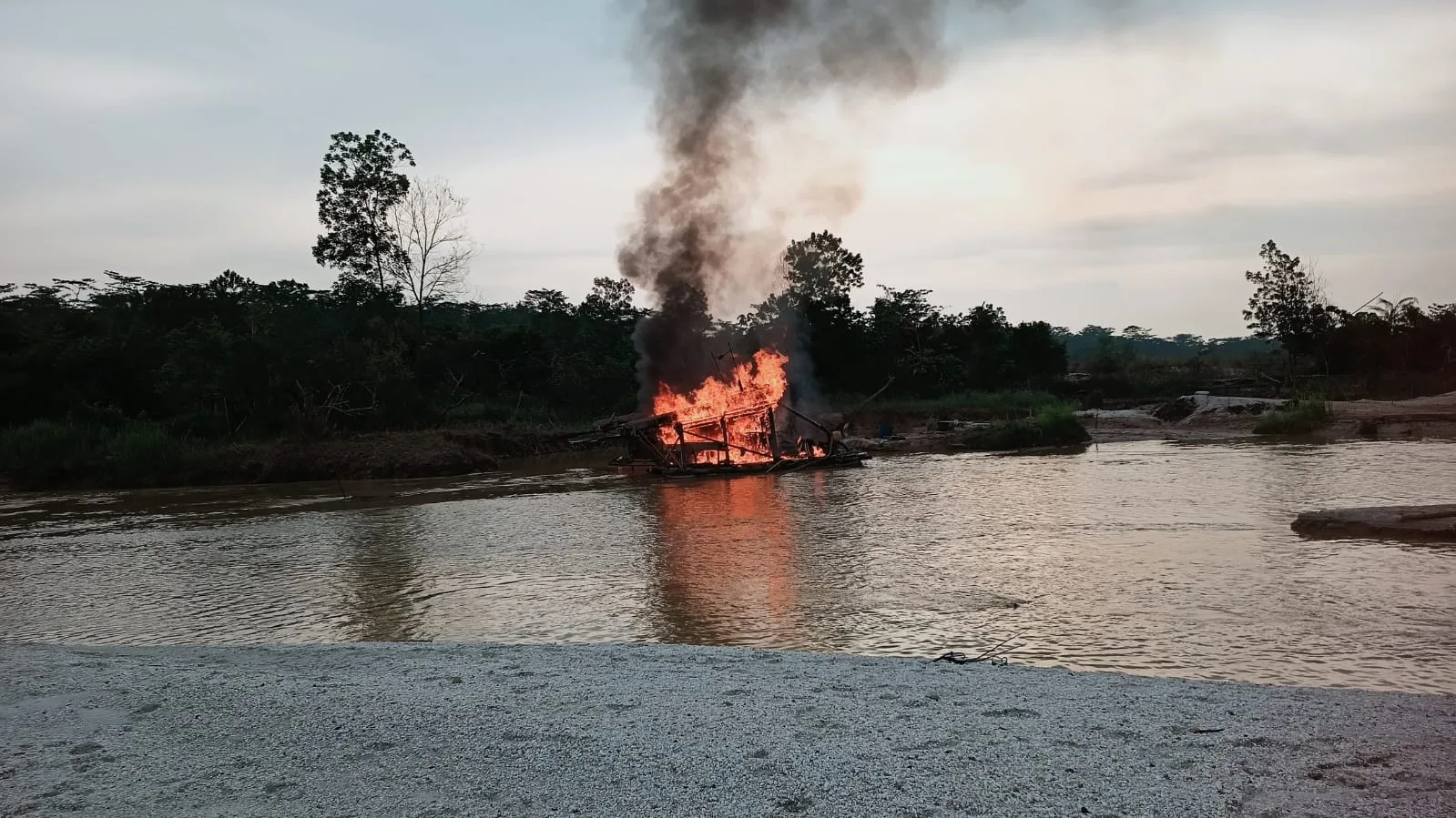 Polisi Bakar 10 Rakit Dompeng Milik Penambang Emas Ilegal