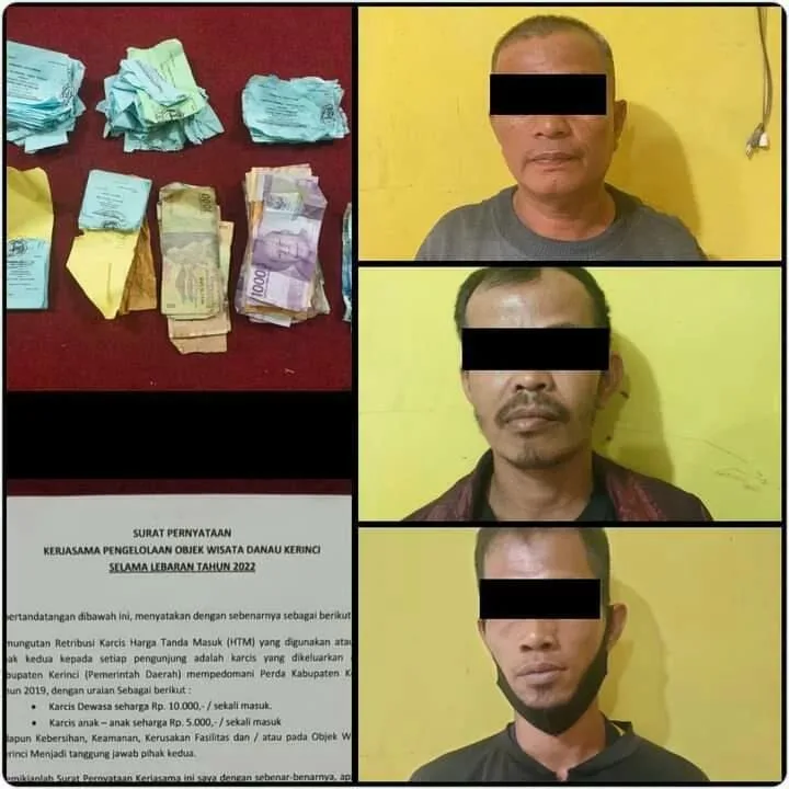 Dari ketiga pelaku, tim kepolisian berhasil menemukan barang bukti berupa uang tunai sejumlah Rp 479.000. Kemudian, 2 blok bundle karcis retribusi masuk objek wisata Danau Kerinci.