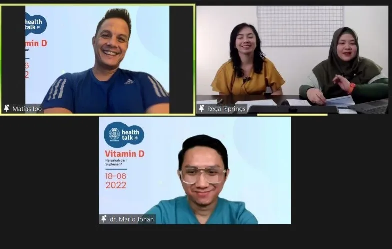 Webinar yang berlangsung dengan hangat itu berlangsung Sabtu 18 Juni 2022 dan diikuti ratusan peserta dari berbagai daerah di seluruh Indonesia. Webinar bertajuk “Vitamin D, Haruskah Dari Suplemen?” itu merupakan program reguler Regal Springs Health Talk.