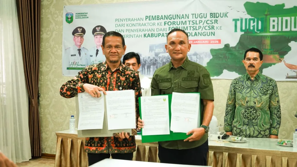 Serah terima aset Tugu Biduk ini diserahkan oleh kontraktor pelaksana PT Gentala Inspirasi Mahakarya. Ar H Ibnu Ziyadi MZ, ST, MH, IAI, kepada Ketua Forum CSR Kabupaten Sarolangun M Ridwan, S.E, dan kemudian diserahkan oleh Ketua Forum CSR Kabupaten Sarolangun M Ridwan kepada Bupati Sarolangun, H Hurmin pada Jumat, 23 Januari 2026 di Rumah Dinas Bupati Sarolangun.