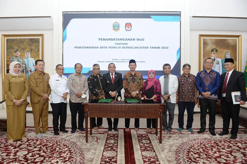 Kerja sama tersebut ditandai dengan penandatanganan Nota Kesepahaman atau Memorandum of Understanding (MoU) oleh Gubernur Sumut Edy Rahmayadi dan Ketua KPU Sumut Herdensi di Rumah Dinas Gubernur Sumut, Jalan Jenderal Sudirman Nomor 41, Medan, Senin, 4 Juli 2022.