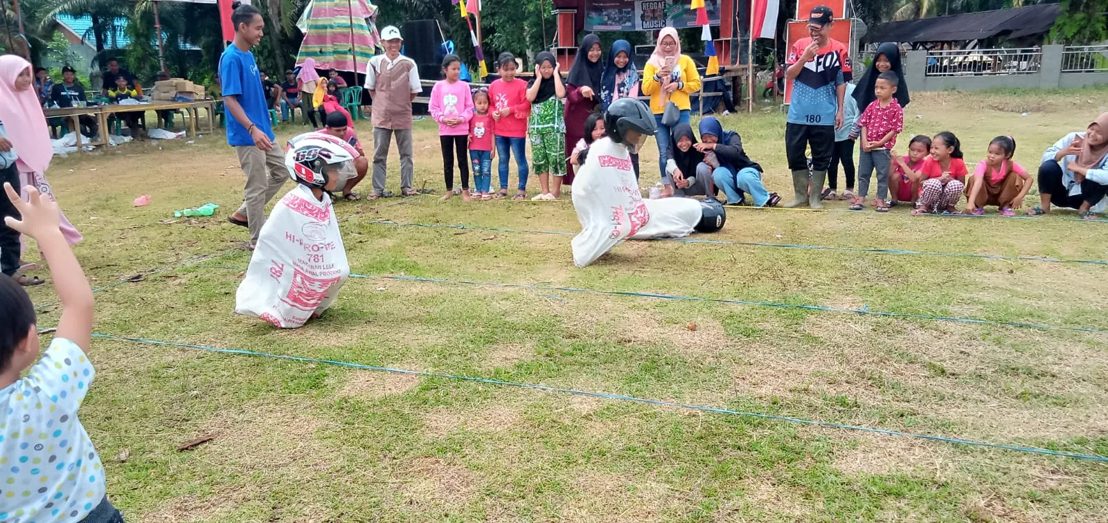 Salah satunya lomba balap karung jongkok yang diikuti anak-anak menyita perhatian penonton. Apalagi para peserta lomba wajib menggunakan karung yang diikat hingga karung menutupi badan, sementara kepala peserta wajib dipasangkan helm. Tentu saja dengan tingkah dan cara peserta banyak menyita perhatian penonton. Gelak tawa penonton terdengar sangat riuh melihat para peserta lomba balap karung jongkok.