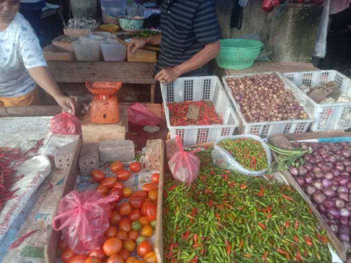 Harga cabai merah di Pasar Simpang Pulai, Rp 20.000 sedangkan Harga Cabe Rawit Rp 20.000 berdasarkan pantauan detail.id/ pada Rabu pagi ini, 2 November 2022.